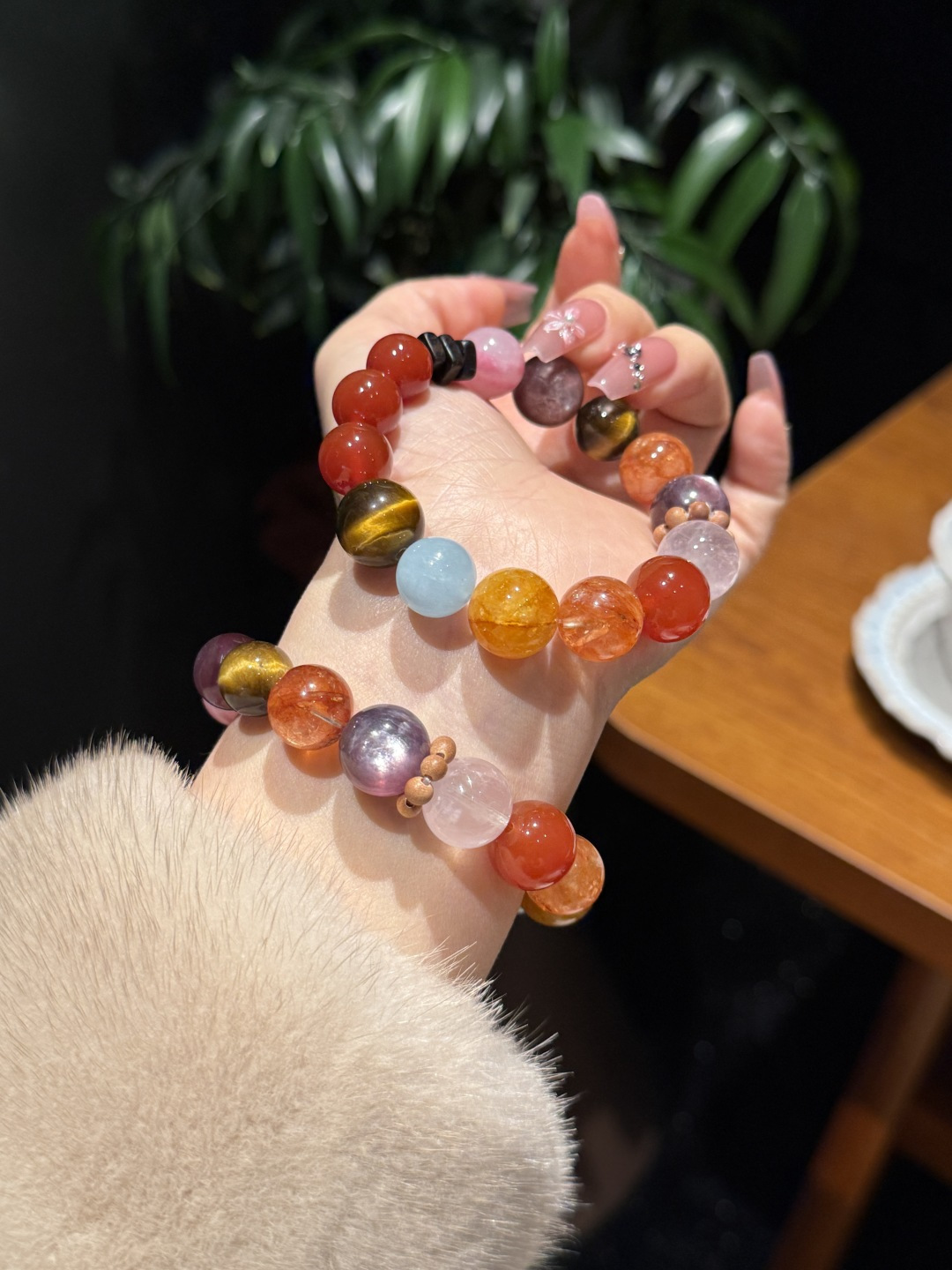 Materials: Red Phantom Quartz / Purple Lepidolite / Rose Quartz / Red Agate / Yellow Phantom Quartz / Aquamarine / Tiger’s Eye / Rose Stone ❤️