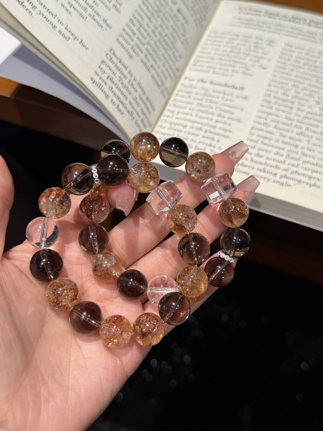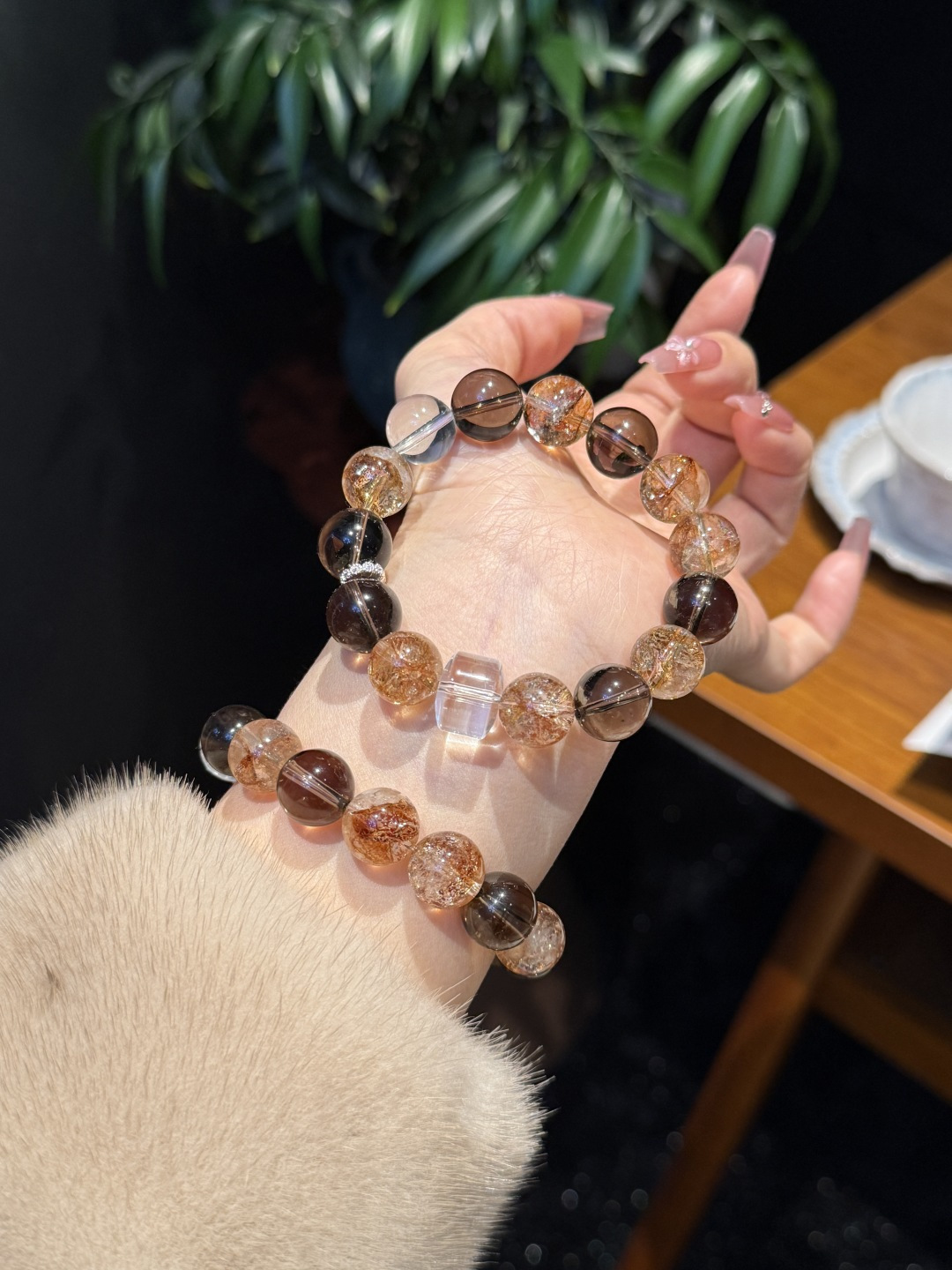 koi phantom quartz hides in the crystals like a lucky fish swimming through the starry river.