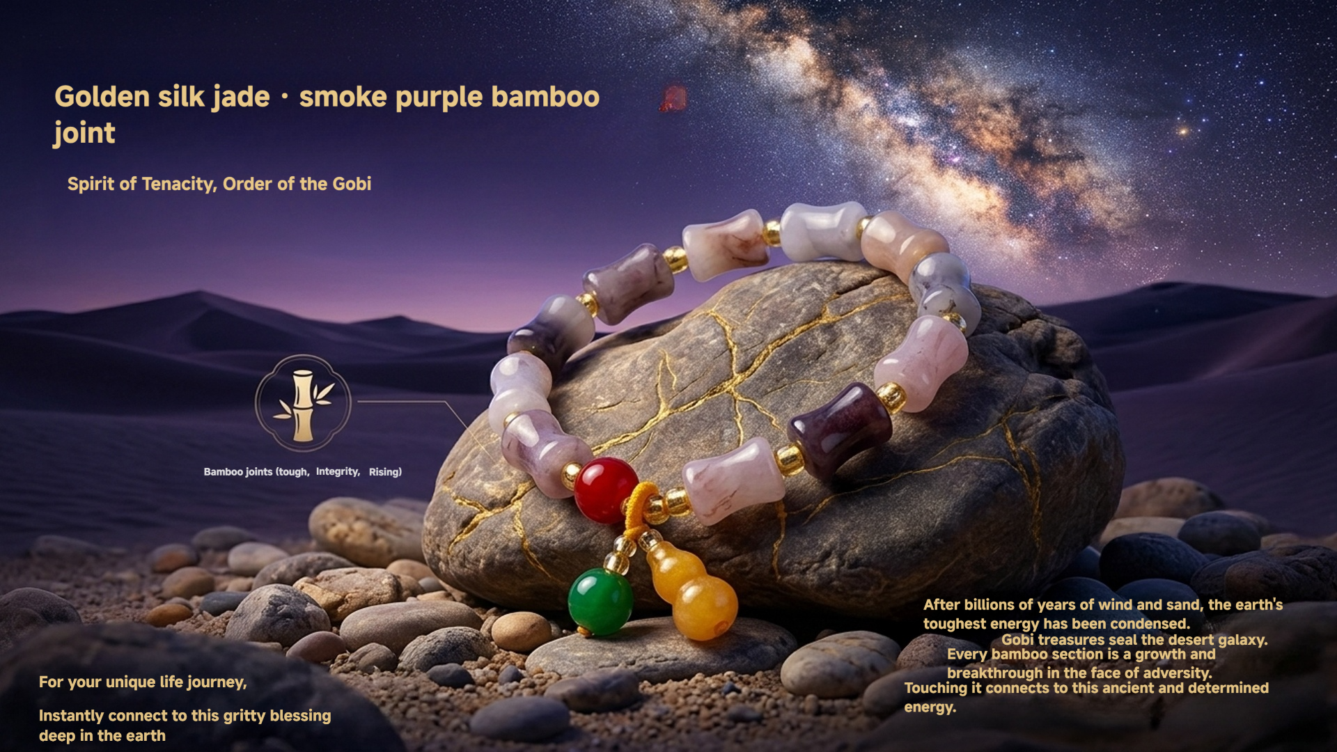 It is more than just a bracelet — it is a medal for your life journey.The bamboo joint represents breakthrough and growth, while the bright texture of Golden Silk Jade seems to capture the radiance of the desert starry sky.By touching it, you connect with this ancient and unyielding energy.