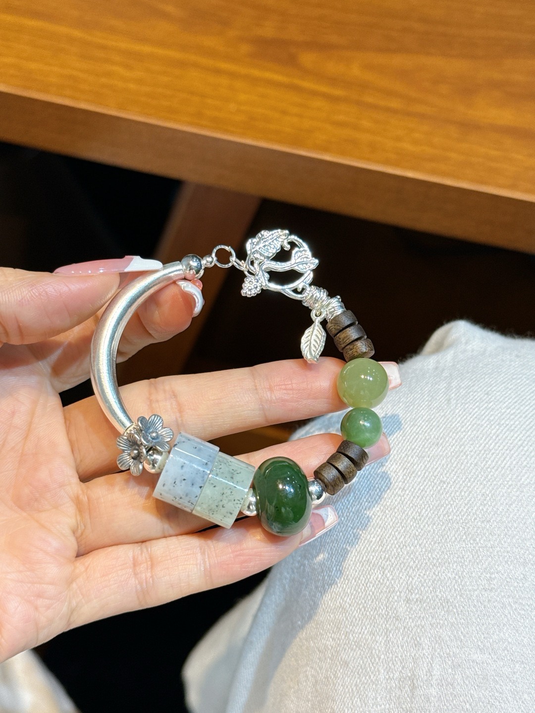 Hotan Jade / Jasper / Agarwood / Silver Accessories❗️Hotan Jade Pandora Style Sterling Silver Chubby Bracelet