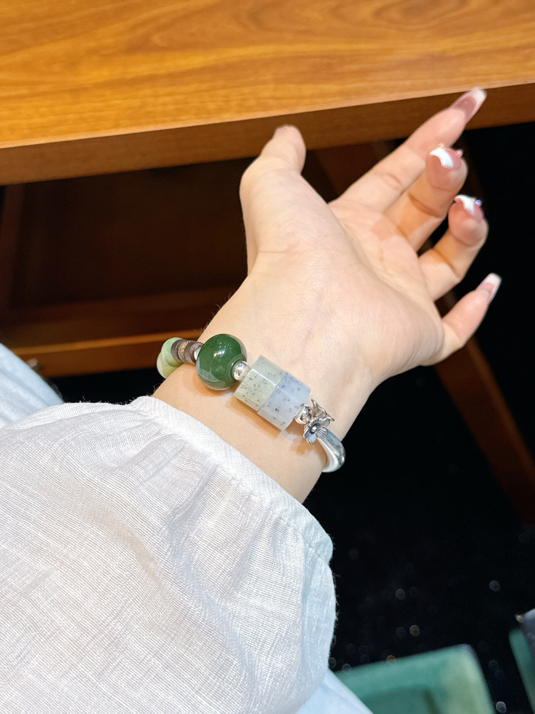 Like taking a bite of sweet and juicy dragon fruit pulp🍧 The jade features a delicate and oily texture, paired with a「Jasper Bread Buckle」for an instant premium vibe! The calm sandalwood fragrance brings a soothing sense of peace~ Understated yet elegant, a must-have for working women!