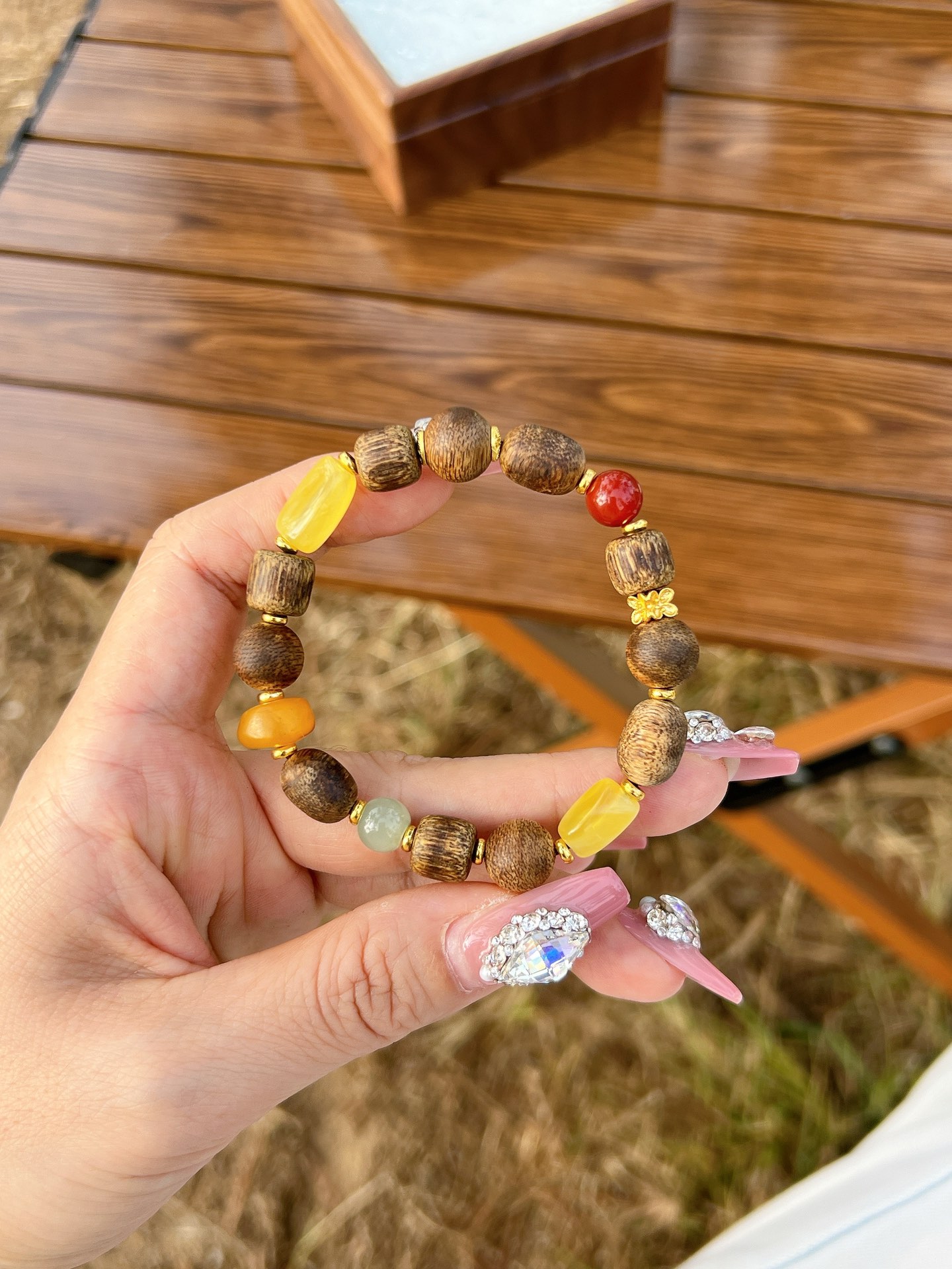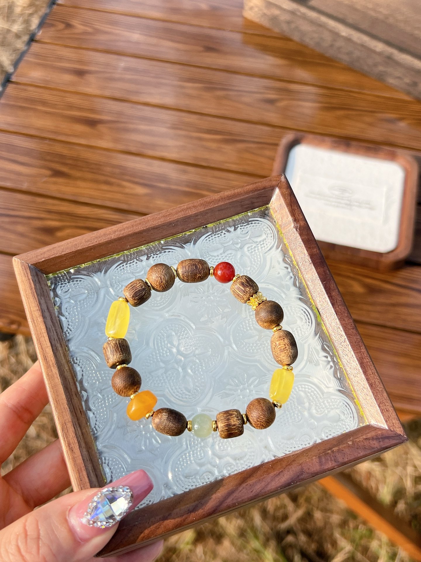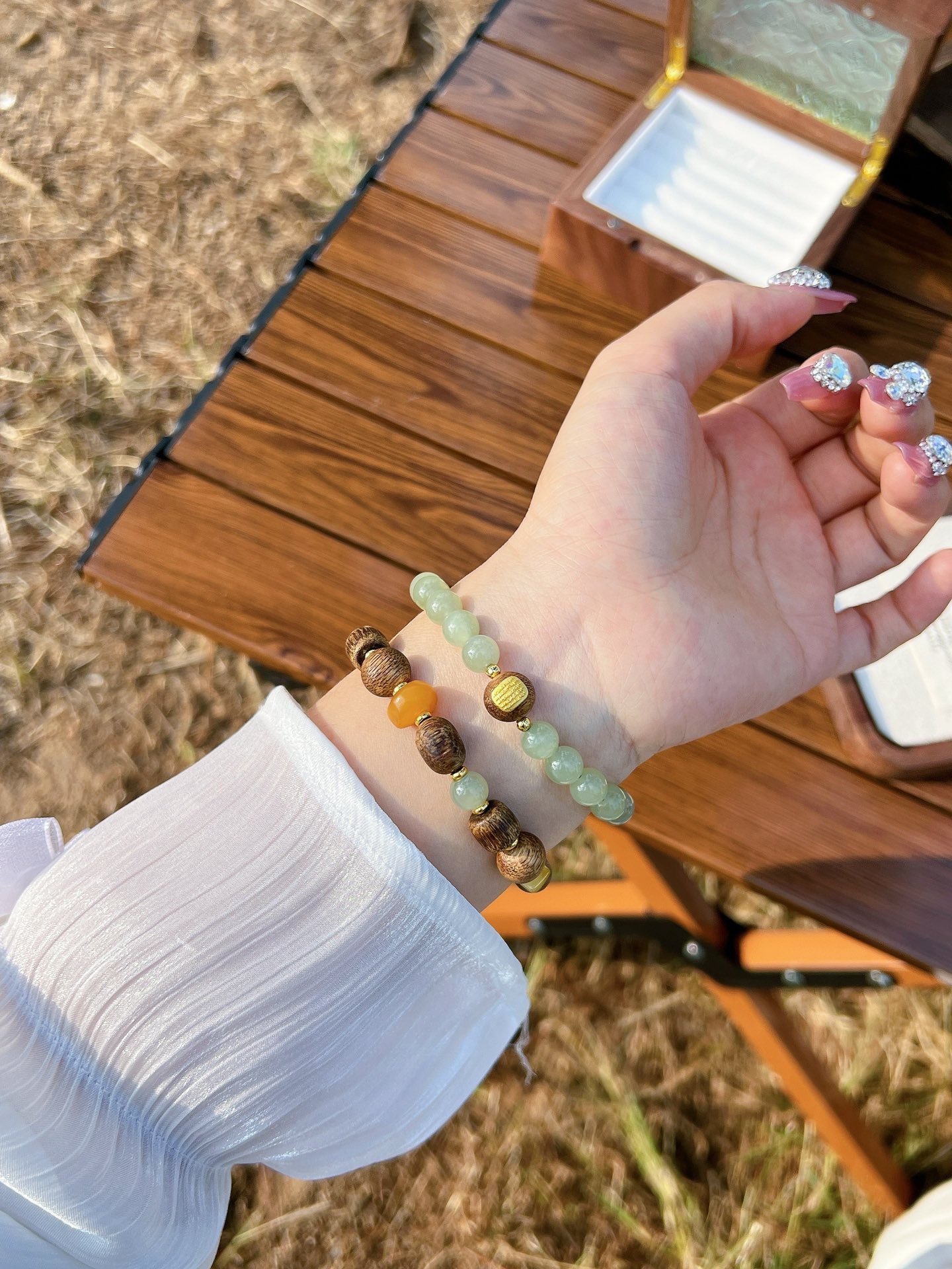 Matching: Natural Amber, Hetian Jade, Southern Red Agate~