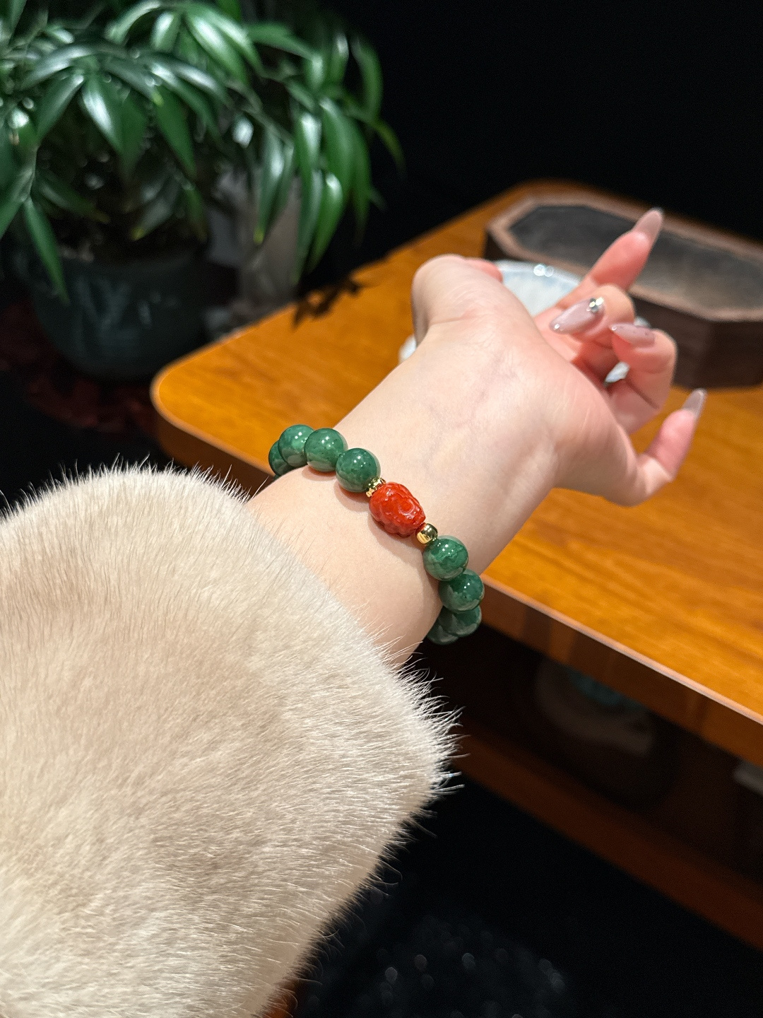 This jasper is incredibly flattering to the skin tone! Paired with the Pixiu, the auspicious beast of wealth, it’s a perfect match❗️