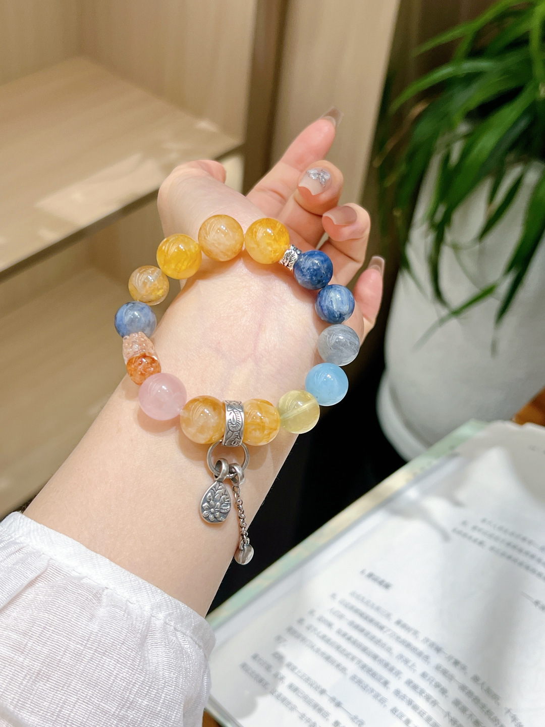 Kyanite & Yellow Flower Agate Bracelet