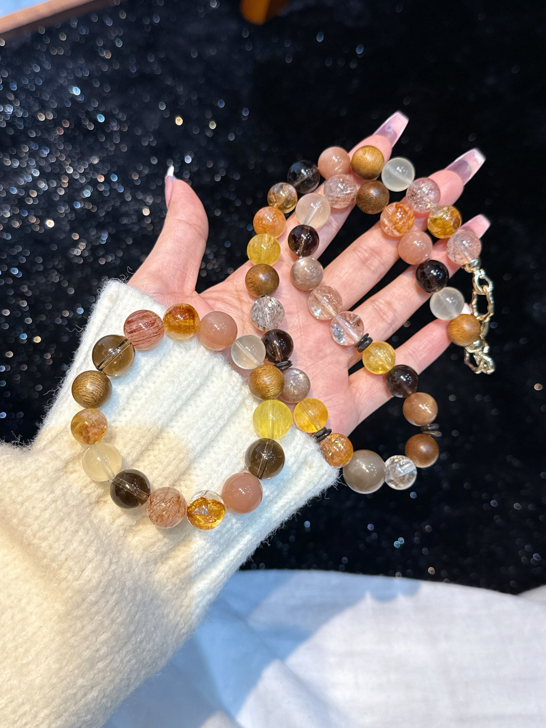Aged Sandalwood for calm • Citrine for wealth • Yellow Rutilated Quartz for gathering energy