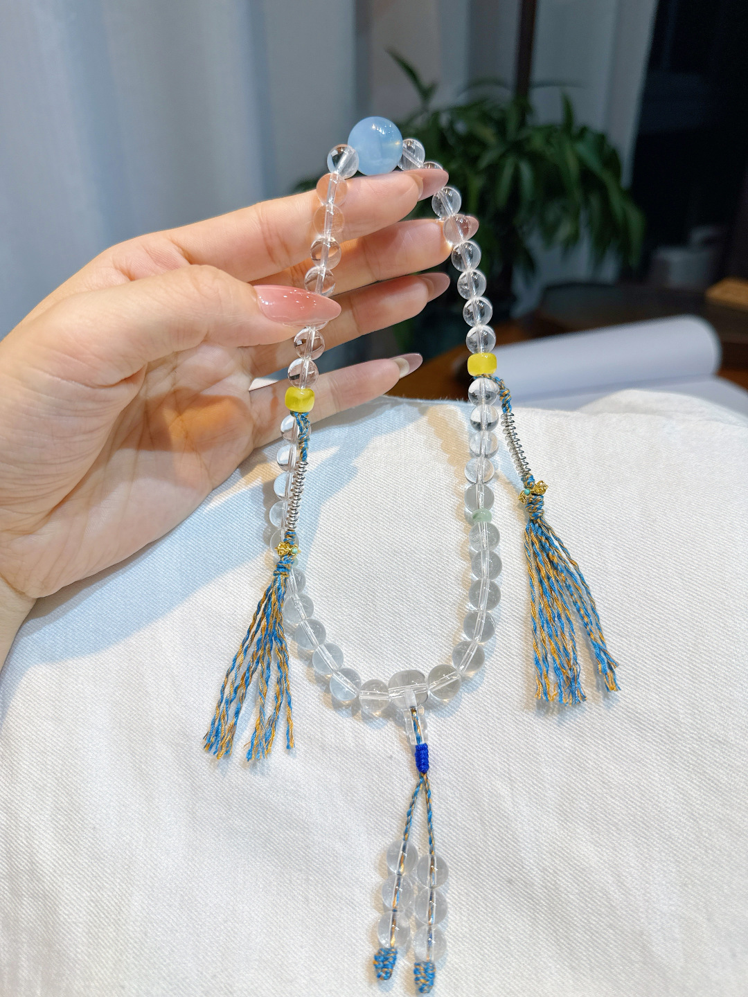 36 Clear Quartz Prayer Beads with Turquoise Vajra