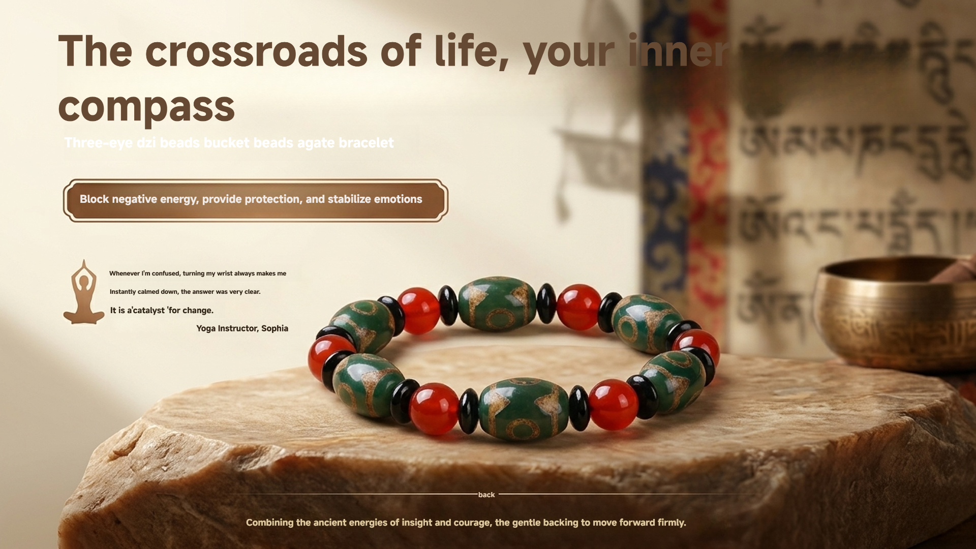 As our customer Sofia, a yoga instructor, said:“Whenever I feel confused when facing choices, turning the Dzi and agate on my wrist calms me instantly, and the answers become unusually clear. It is my catalyst for making brave changes.”