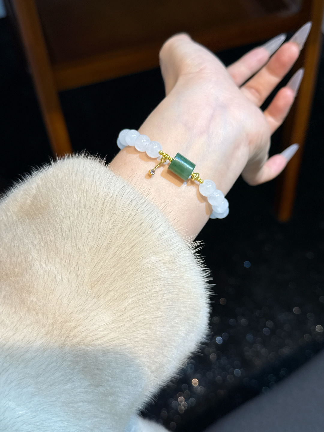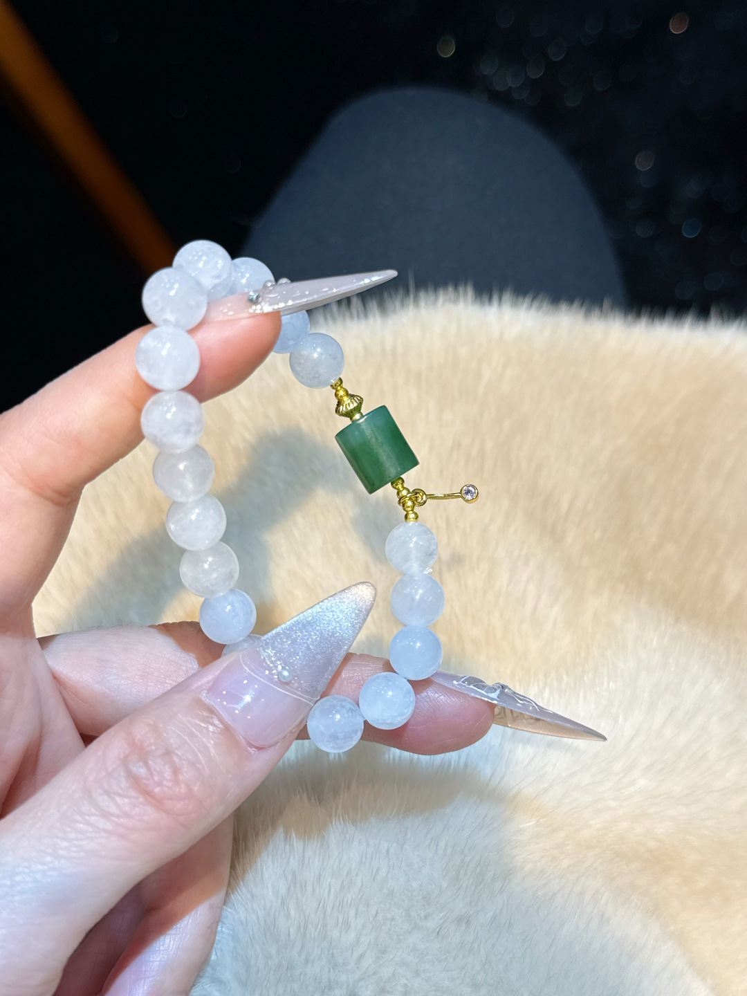 “White Phantom × Jasper Barrel Beads” 💚