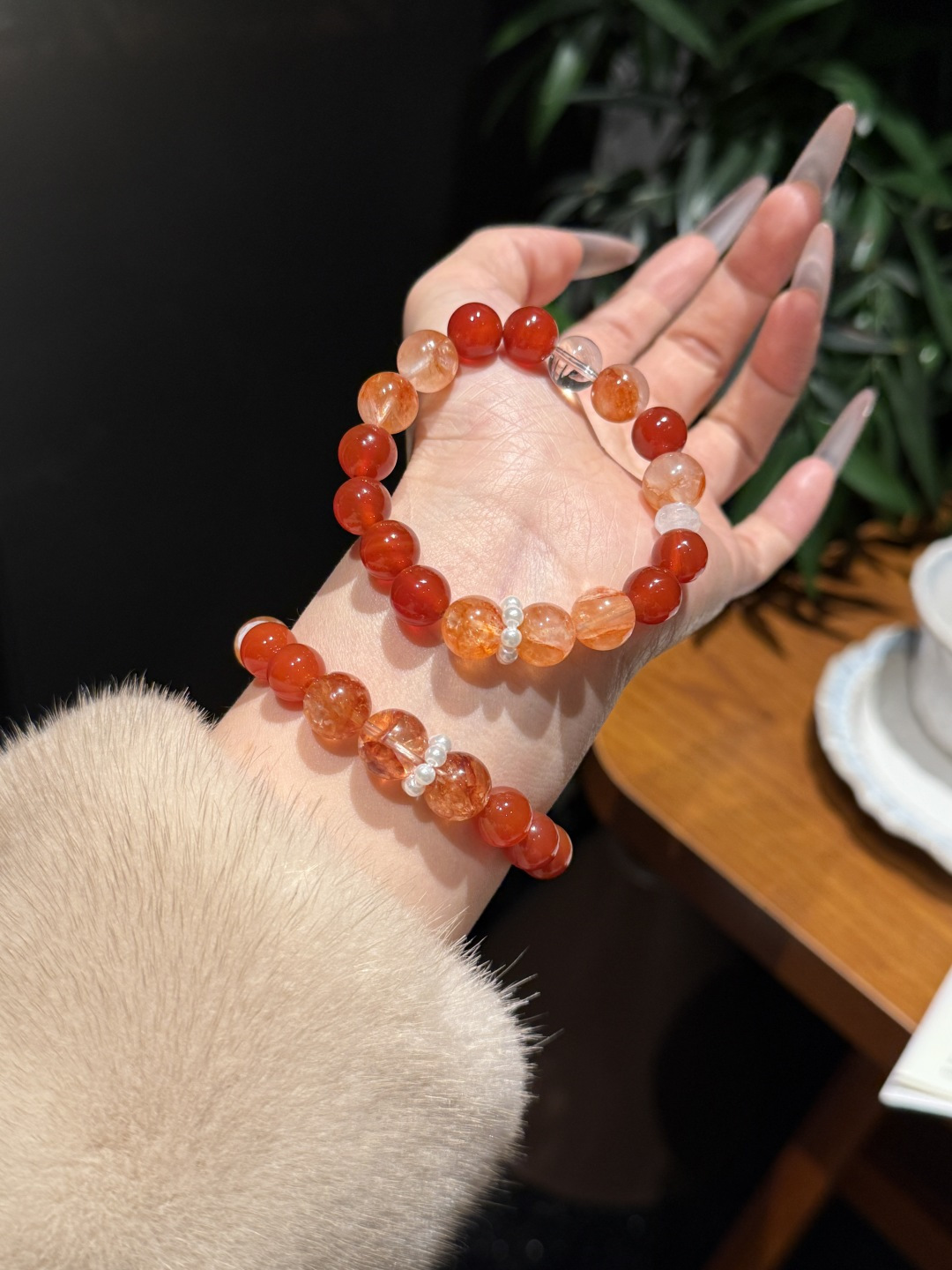 A perfect match of yellow phantom quartz and red agate!