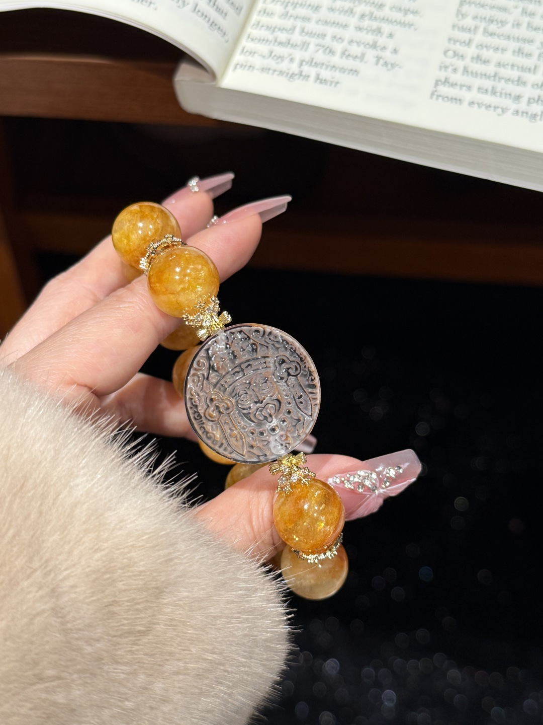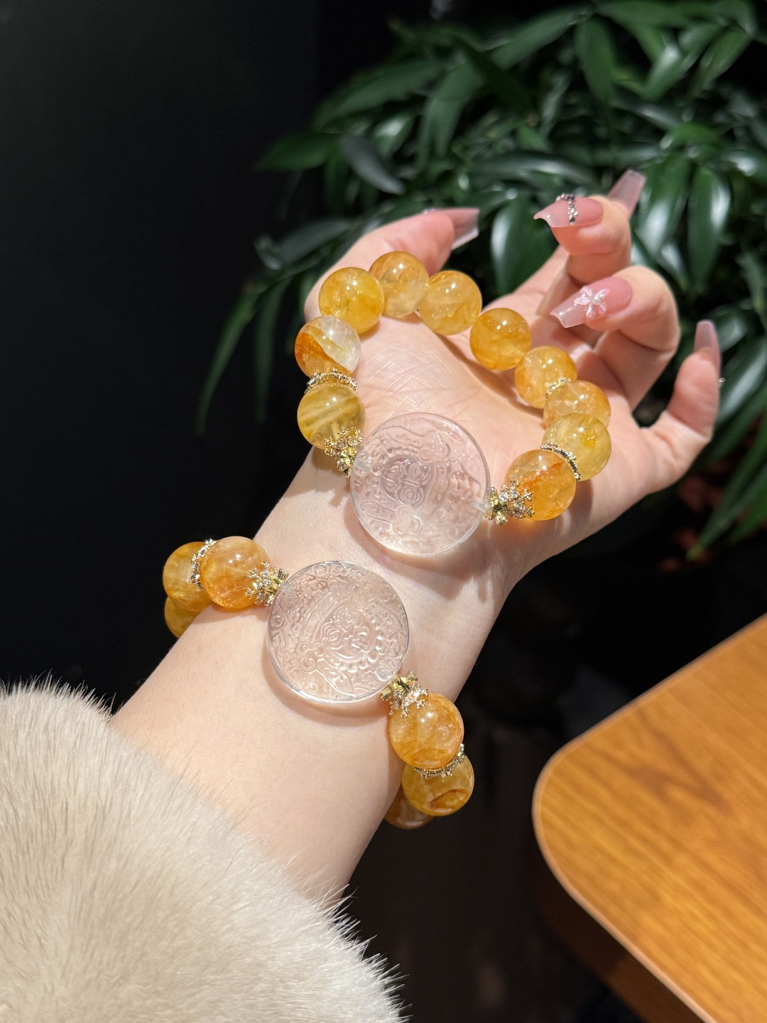 Yellow Phantom Quartz paired with a Clear Quartz Palden Lhamo pendant.